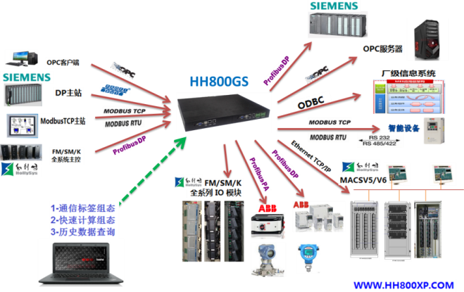 HH800GS 產(chǎn)品內(nèi)置了OPC 客戶端和服務(wù)器端軟件,已經(jīng)在出廠前配置完畢(包括 DCOM 配置、權(quán)限設(shè)置等等),現(xiàn)場可以直接使用。同時(shí),還可以保護(hù) OPC 數(shù)據(jù)通訊的信息安全。